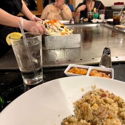 Very kind service, they are cheerful even when asked questions for another straw or a fork. I loved the food, whenever I come hee I order the Sushi roll deluxe and it always makes me want to come more often. The atmosphere was very relaxing, and there was no bright light, instead it was dimmed light. You can watch your food being cooked or sit in a booth/table